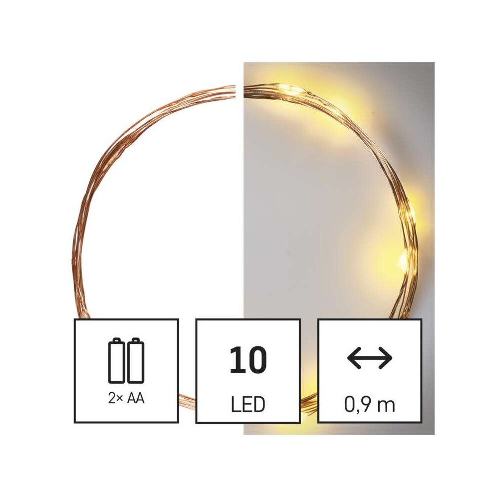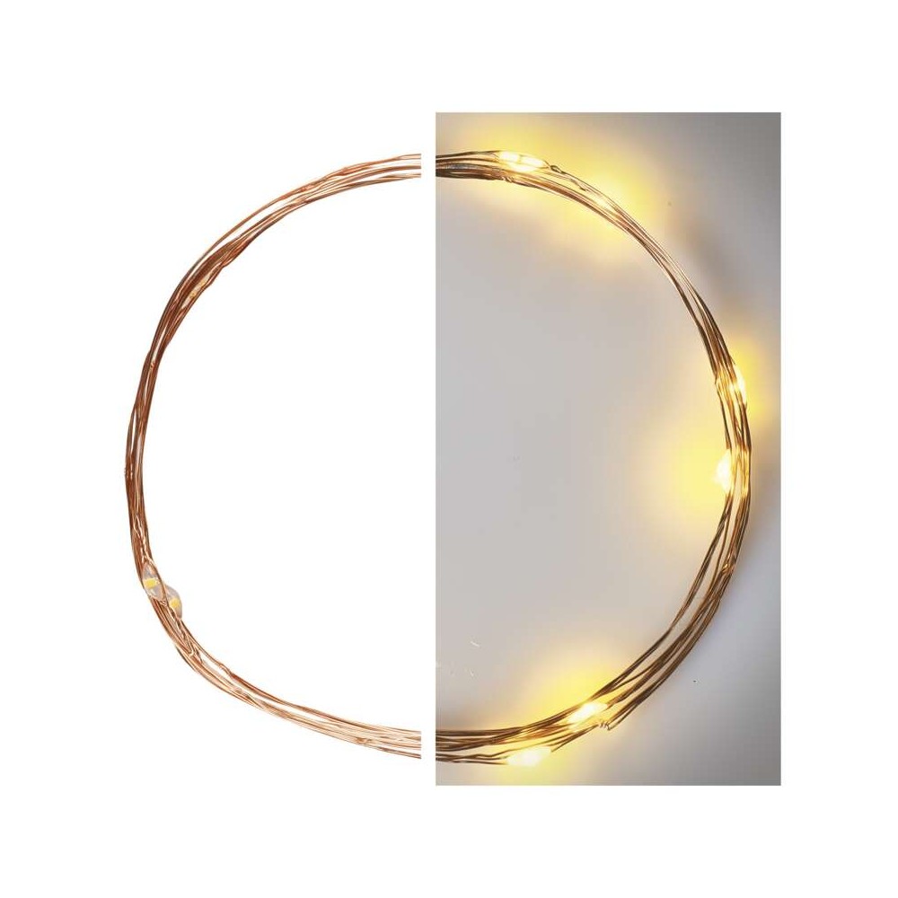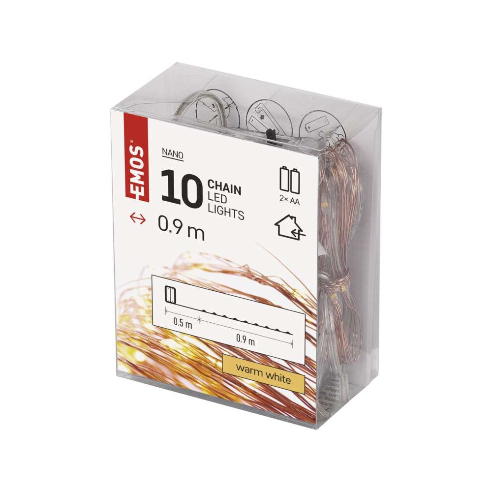 Catena LED Batteria Nano: 10 LED Bianco Caldo, Filo Rame, Timer | EMOS D3AW06