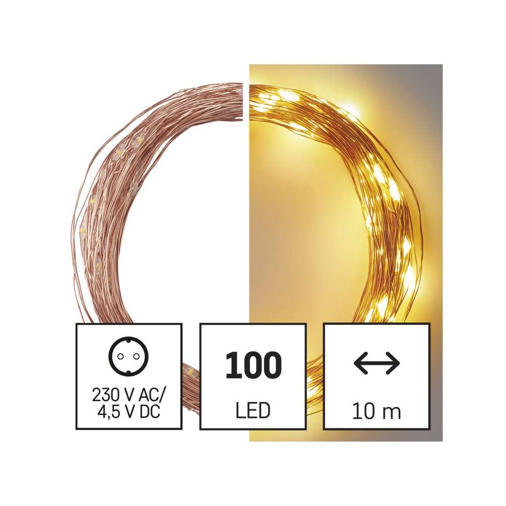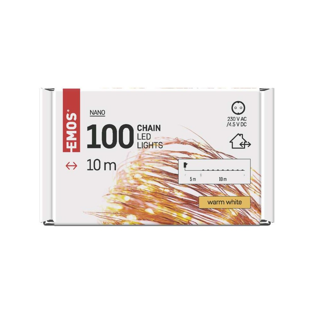 Catena NANO LED: 100 LED Caldi, Timer, 10mt Interno/Esterno | EMOS D3AW02
