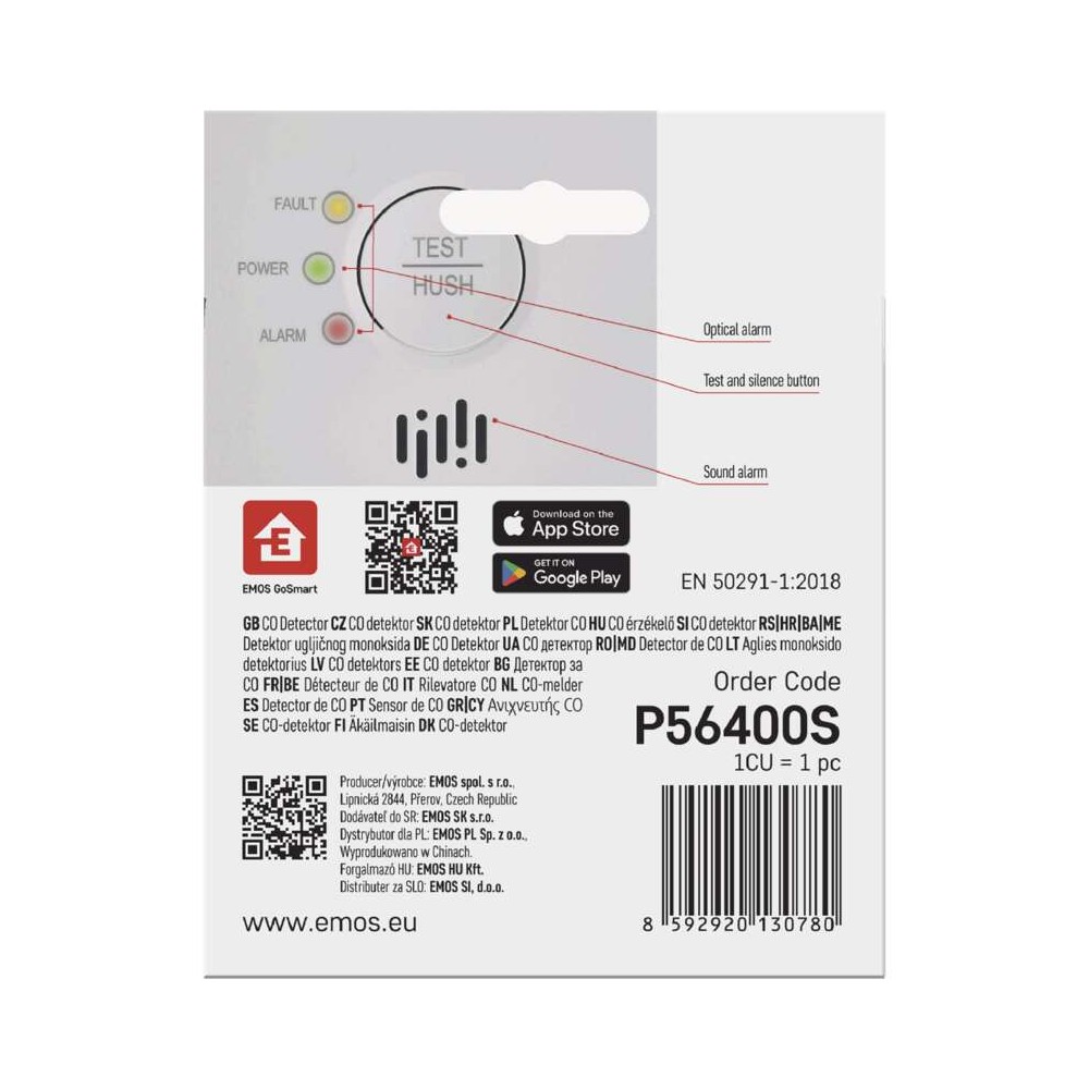 Rilevatore Smart di Monossido di Carbonio Wi-Fi Certificato EN 50291-1:2018 | EMOS P56400S